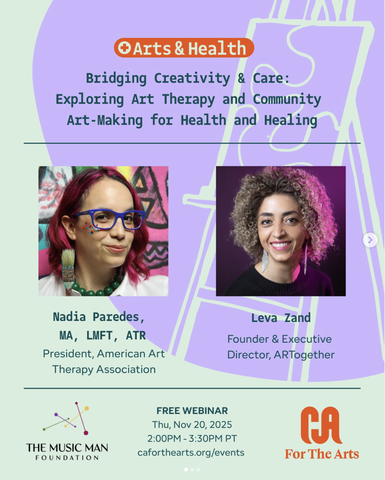 Register: https://www.caforthearts.org/events/exploring-art-therapy-and-community-art-making-for-health-and-healing
