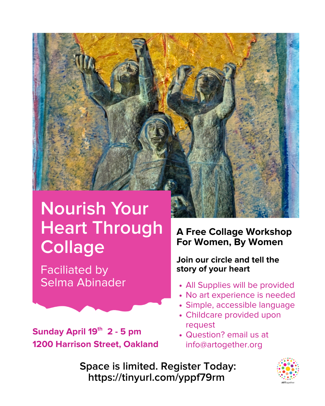 Free childcare will be provided upon request. If you need childcare support during the event, please contact info@artogether.org at least one week in advance.